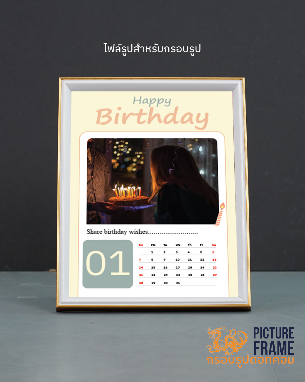 Template Happy Birthday พร้อมปฎิทิน แบบ Polaroid
